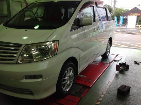 アルファードに205/65R16エコピアEX20RV+エコフォルムSE10+アライメント調整