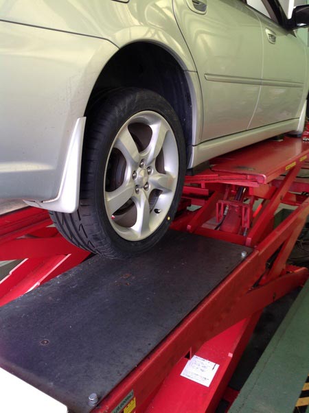 スバルのレガシィのタイヤ交換とアライメント調整を行いました!!