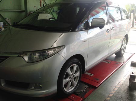 ので、エスティマHVもアライメントとの事で作業させて頂きました!!