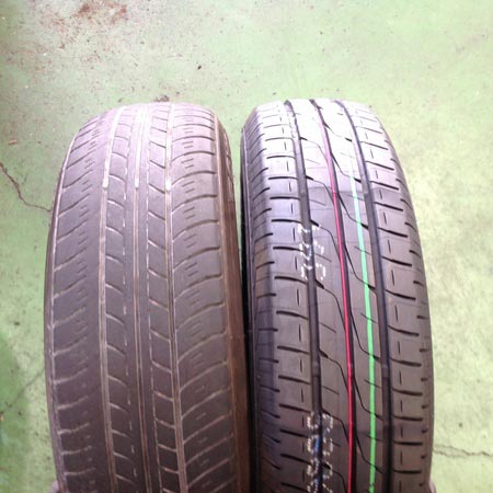 外側の偏摩耗がひどかったので、アライメント調整も一緒にご提案させていただきました。