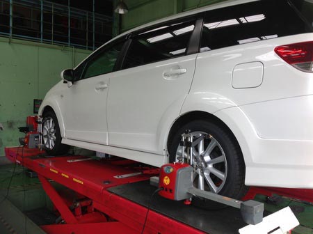さて、本日の作業はWISHのタイヤ交換&アライメント調整です!!