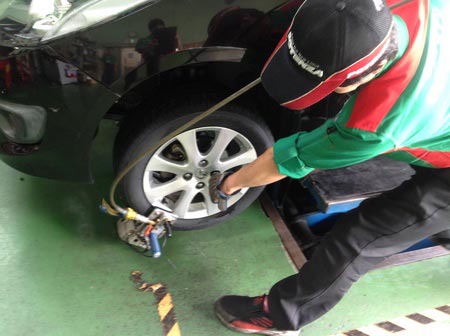 取付はタイヤ館の特許技術であるセンターフィットで取り付けしているので