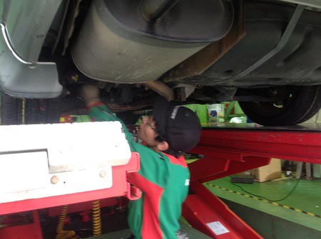 安全点検でバッテリーが要交換判定が出ており、アライメント作業終了後でエンジンを