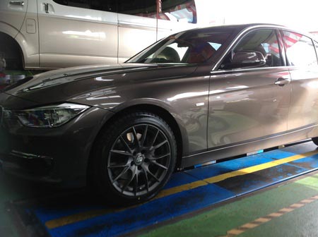 今日は外車スタッドレス取り付けです。車種はBMW3シリーズのアクティブHVです。