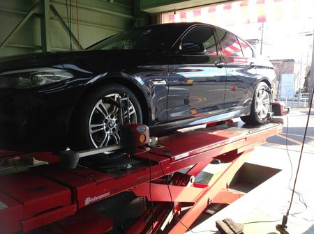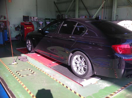 今日はBMW528Mスポーツパッケージのタイヤ交換とアライメント調整です。
