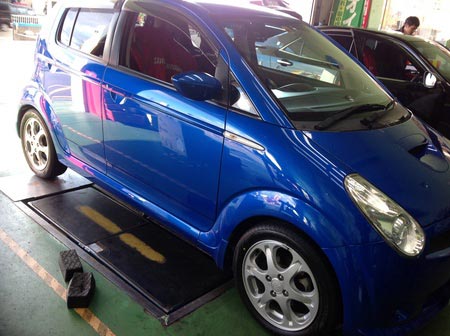 車高調で車高を落としてあり、フロントのキャンバーも若干寝かしてあるので、