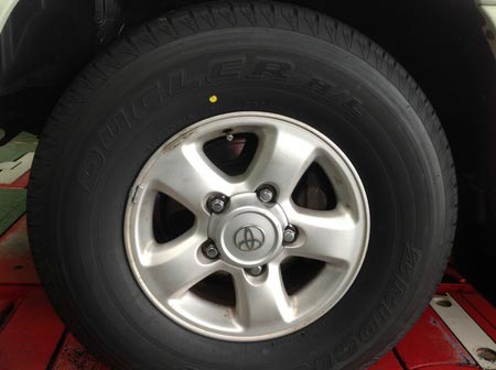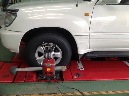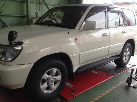 本日の作業はトヨタのランクル100のタイヤ交換とアライメント作業です!!