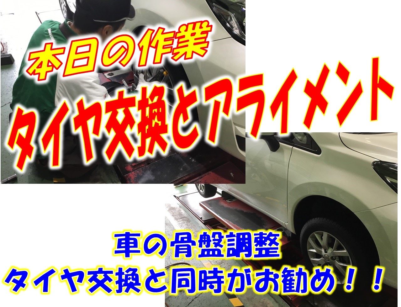 タイヤの偏摩耗を抑制しタイヤが長持ち、タイヤの性能発揮のためアライメントもさせて頂きました!!