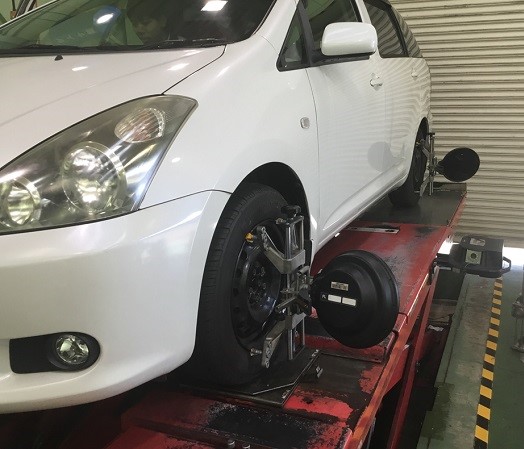 ブーツ交換で足回りをバラしているので4輪アライメントで足回りの角度を調整します。しっかり整備をおこなったので車検は無事に通りました!