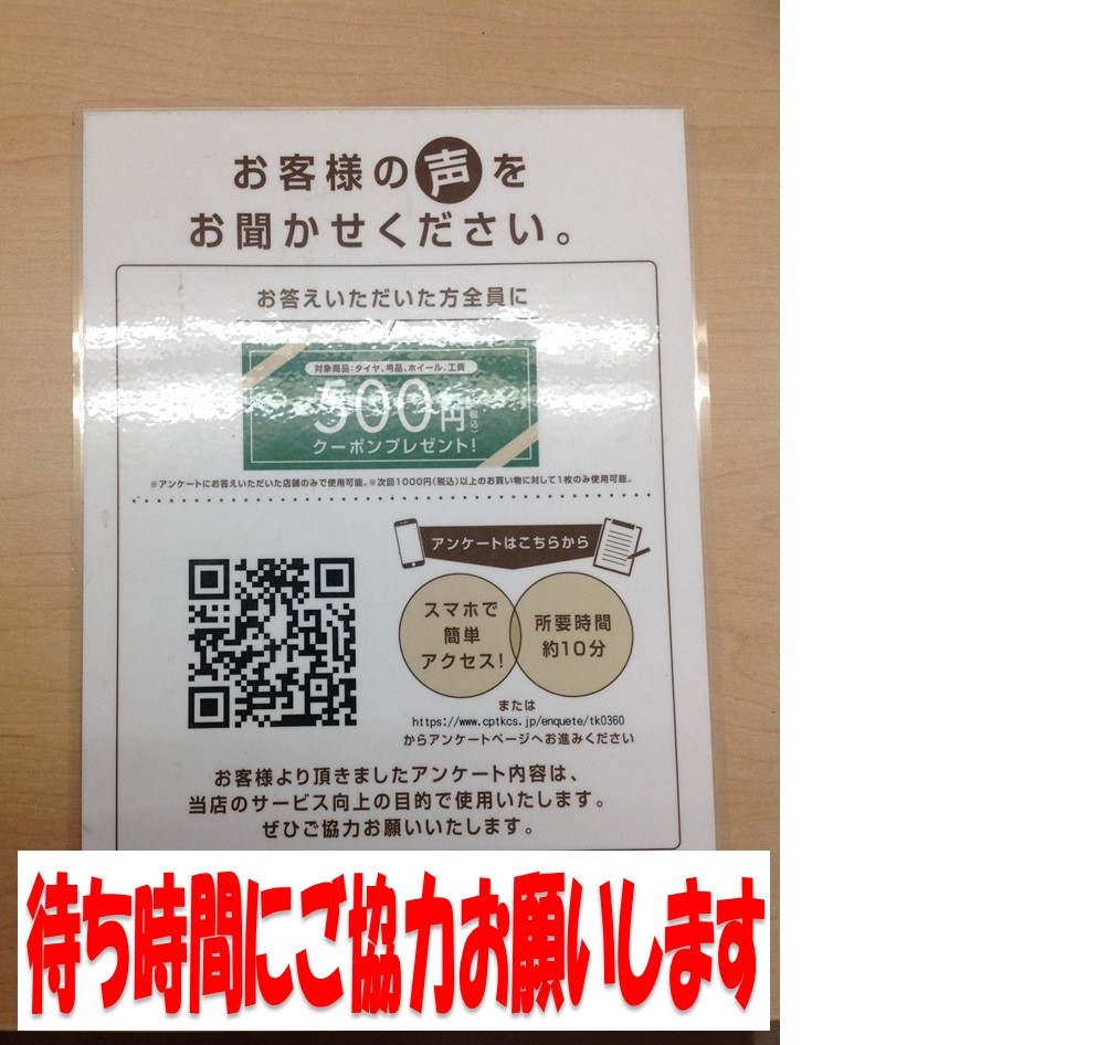 ご協力頂けると、次回のお会計にお使い頂ける500円クーポン配布しておりますので、