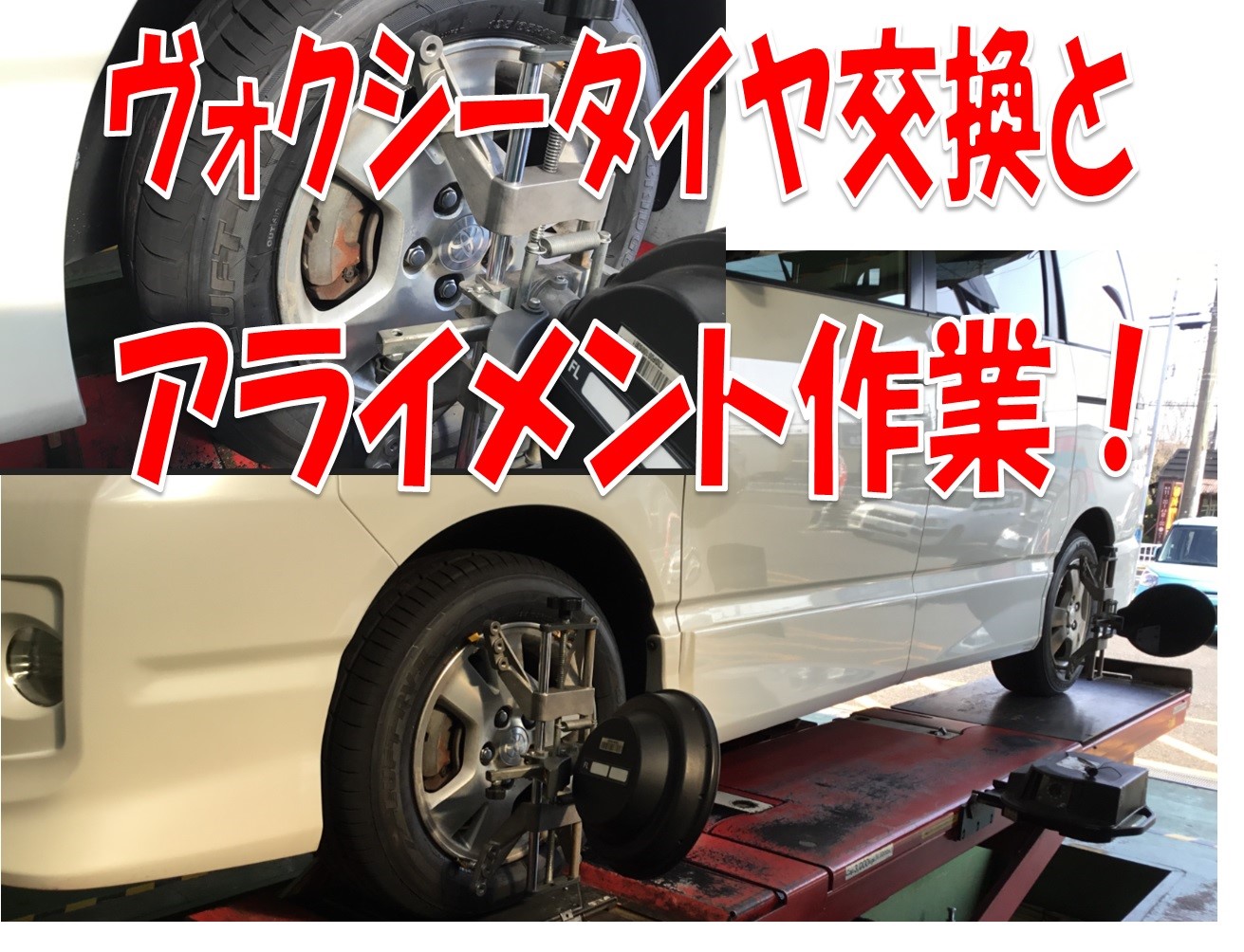 本日はヴォクシーのタイヤ交換とアライメントをご紹介します!!