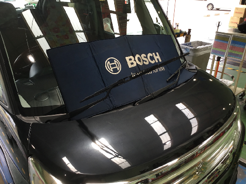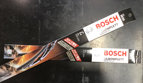 さっそくワイパー交換へ。今回ご提案させていただいたのはボッシュの撥水ワイパーです。撥水とは水をはじくことを言います。雨の日の視界をよりよくしたい方へのオススメ商品です。