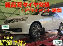 夏タイヤ交換+アライメント作業 トヨタ・アリオン