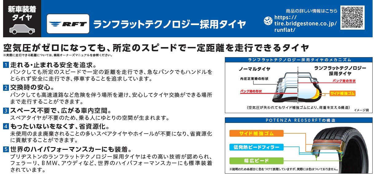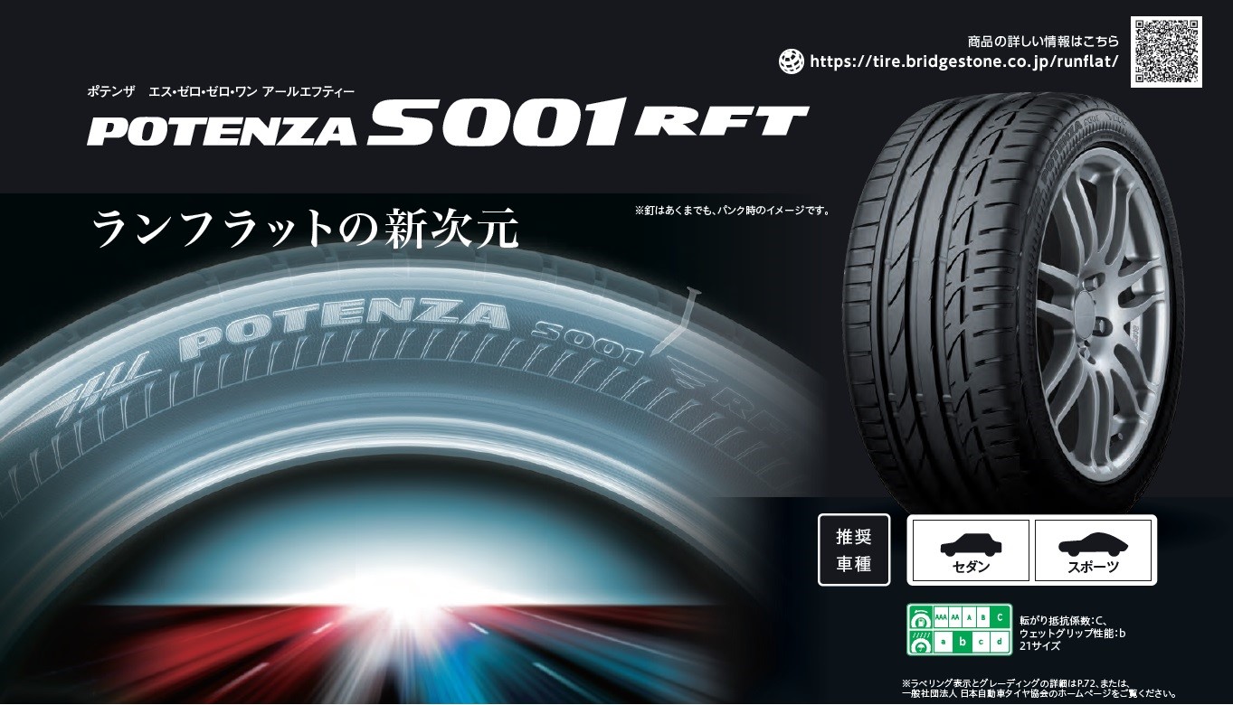POTENZA・S001 RFT (ポテンザ・エスゼロゼロワン・アールエフティー) ポスト ◎タイヤほぼ3行紹介◎ ①パンクしても走れる! ②ノーマルタイヤと遜色無い乗り心地! ③ポテンザだから、ドライ・ウェットは高次元! 【総評価】速度80㎞/hで、80㎞の距離の走行が可能! 関連情報もあわせてご覧ください 【リンク】公式ホームページはこちらから! カテゴリ:商品情報 タイヤ関連