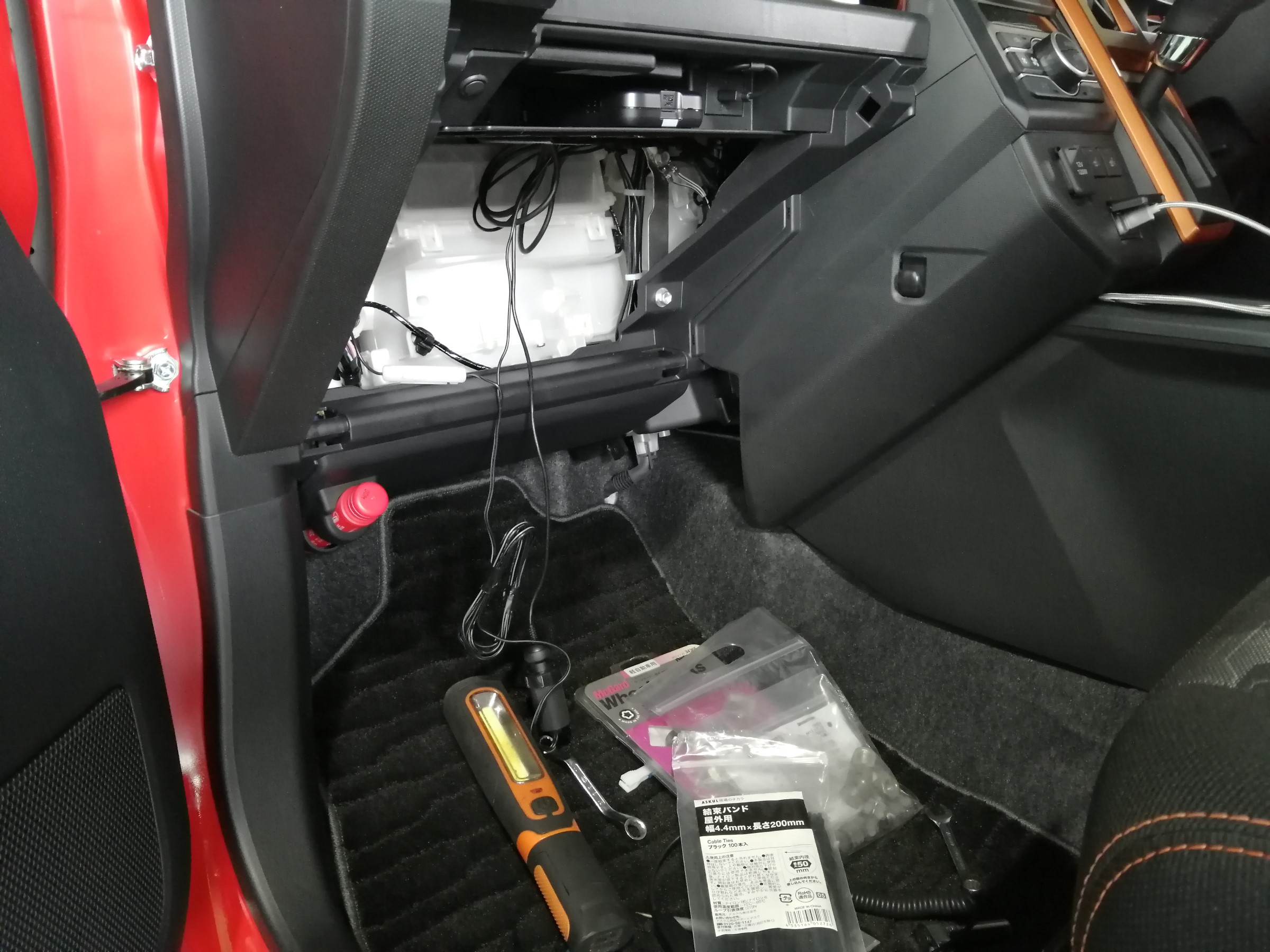 車内に配線を目立たない様に