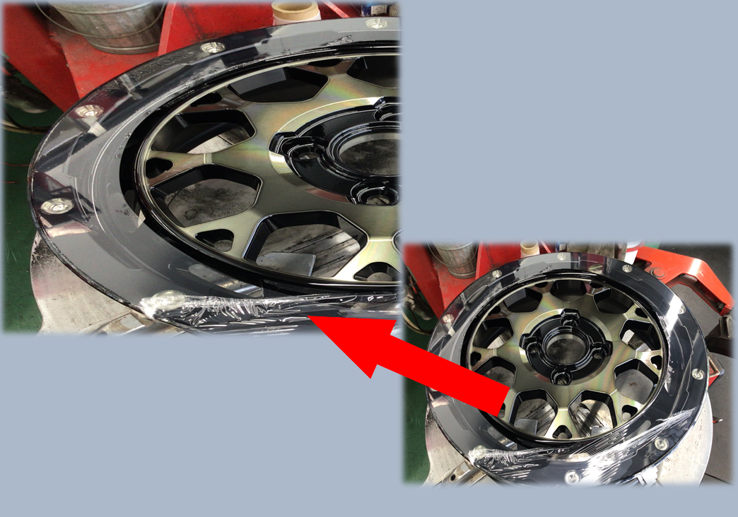 リム周りには保護フィルムを巻きます。