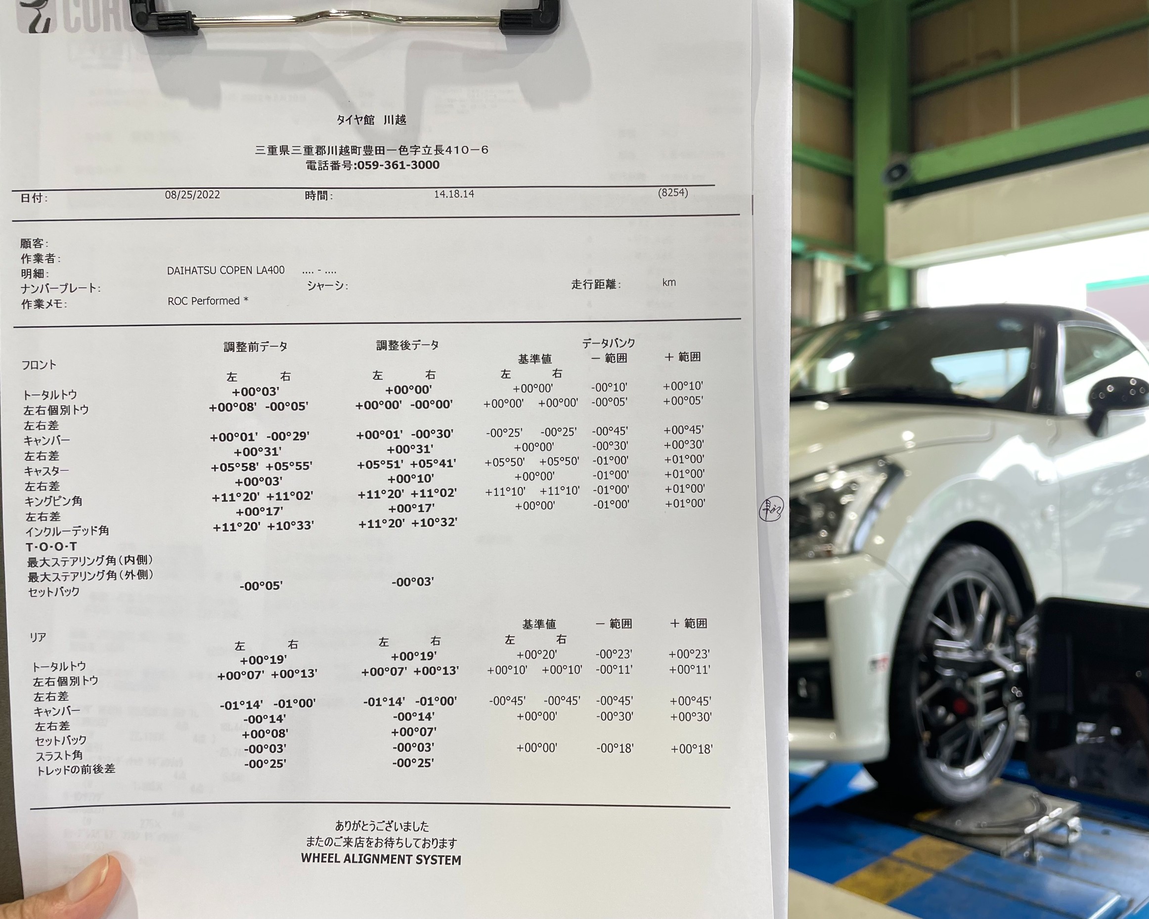 今回アライメント調整もご一緒作業させていただきました☺