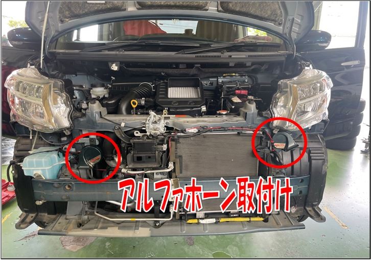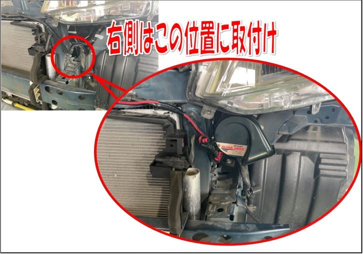 正面からみて左側は純正ホーンが付いていた位置に装着!