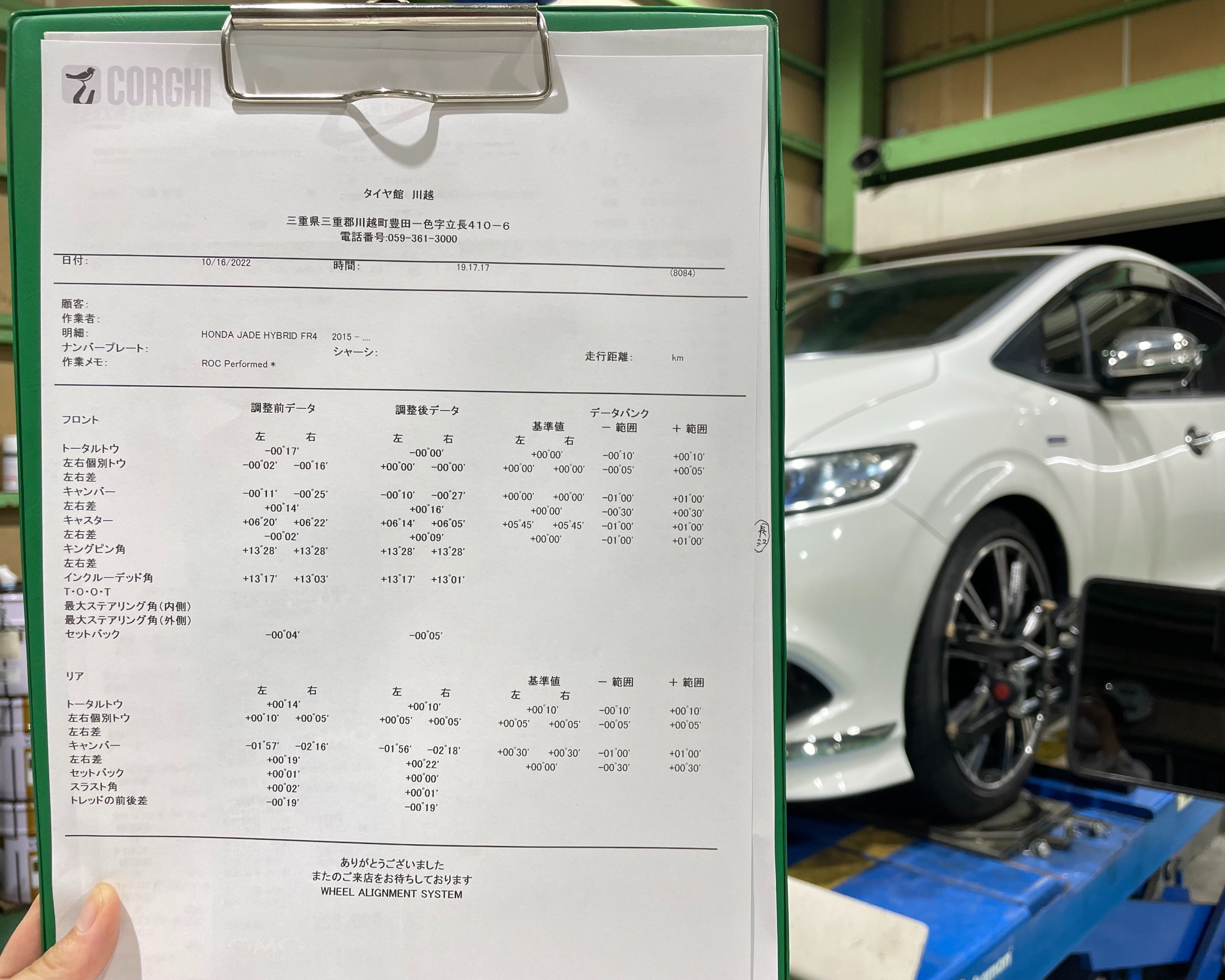 ★【ホンダ・ジェイド】夏タイヤ交換「セイバーリング SL201」&アライメント測定·調整