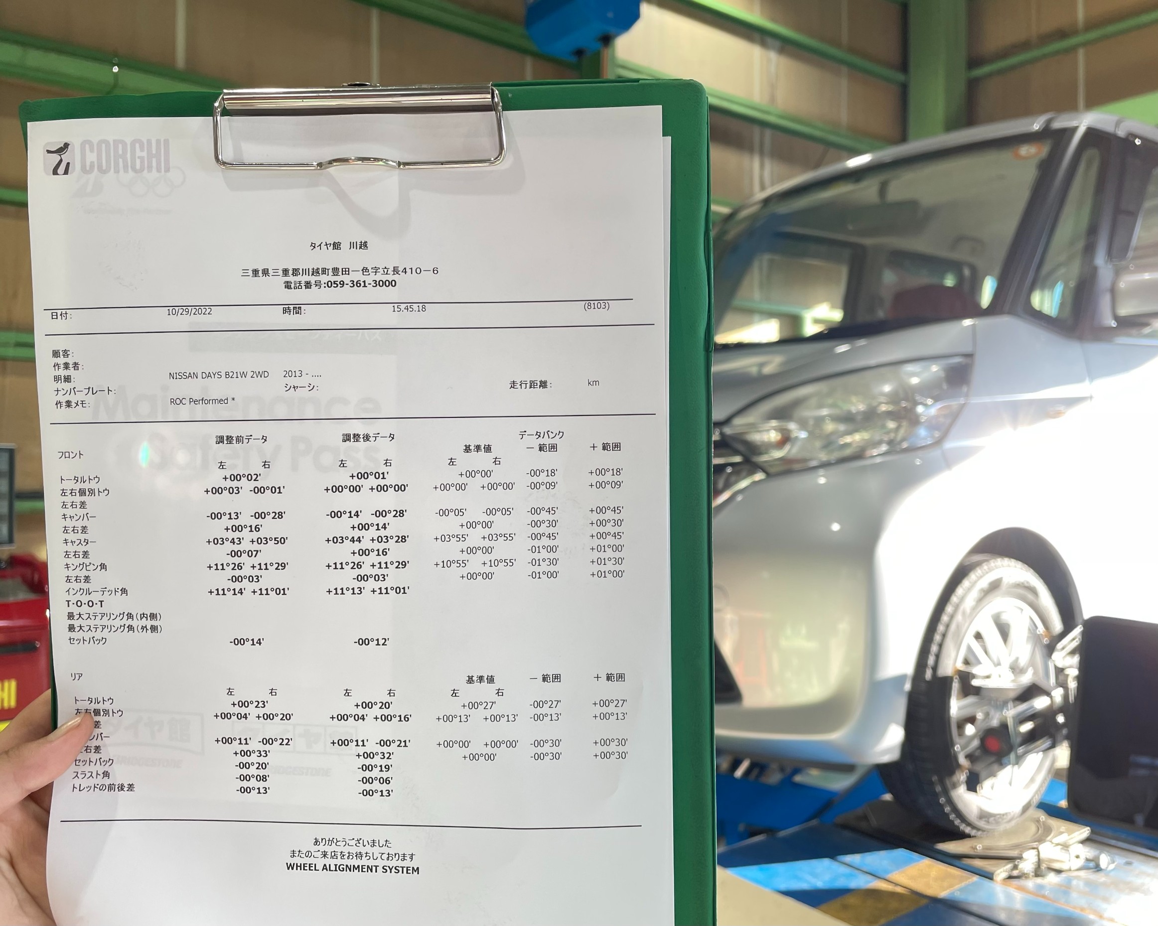 今回はアライメント調整もご一緒に作業させていただきました!