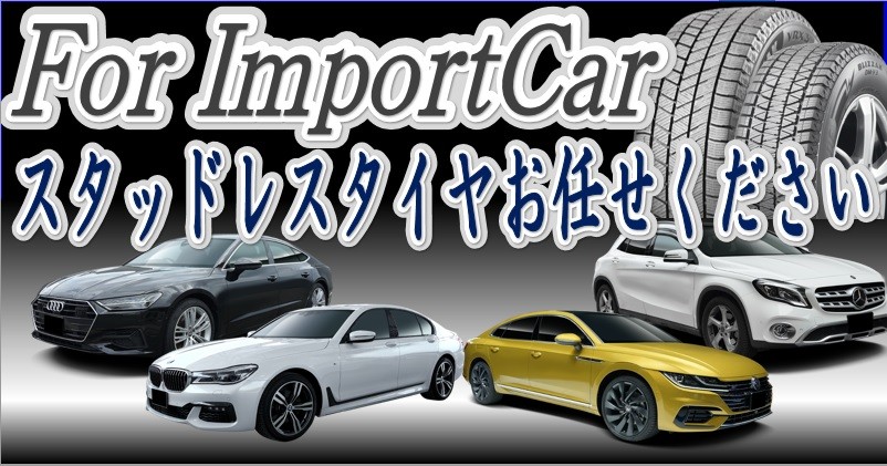 輸入車のスタッドレスタイヤもお任せください!! ポスト 2022年11月19日 BNW ミニクーパー メルセデスベンツ Cクラス フォルクスワーゲン ゴルフ フォルクスワーゲン T-Cross ボルボ 60シリーズ ボルボ 40シリーズ フォルクスワーゲン ポロ メルセデスベンツ GLB フォルクスワーゲン T-Roc ジープ ラングラー などなど 取り扱いございますので ご相談ください。 商品は取り寄せになるのでお早めにお願い致します。 カテゴリ:お知らせ
