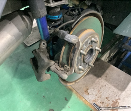 写真はリアのキャリパーを外したところです。