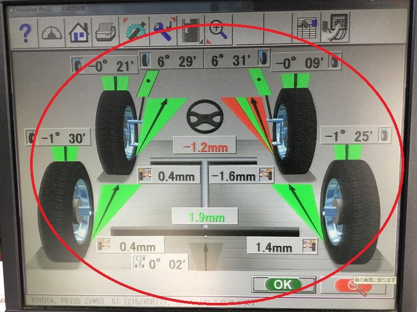 このプリウスは後輪の調整もついておりますのでしっかりと4輪直せます!そして・・・