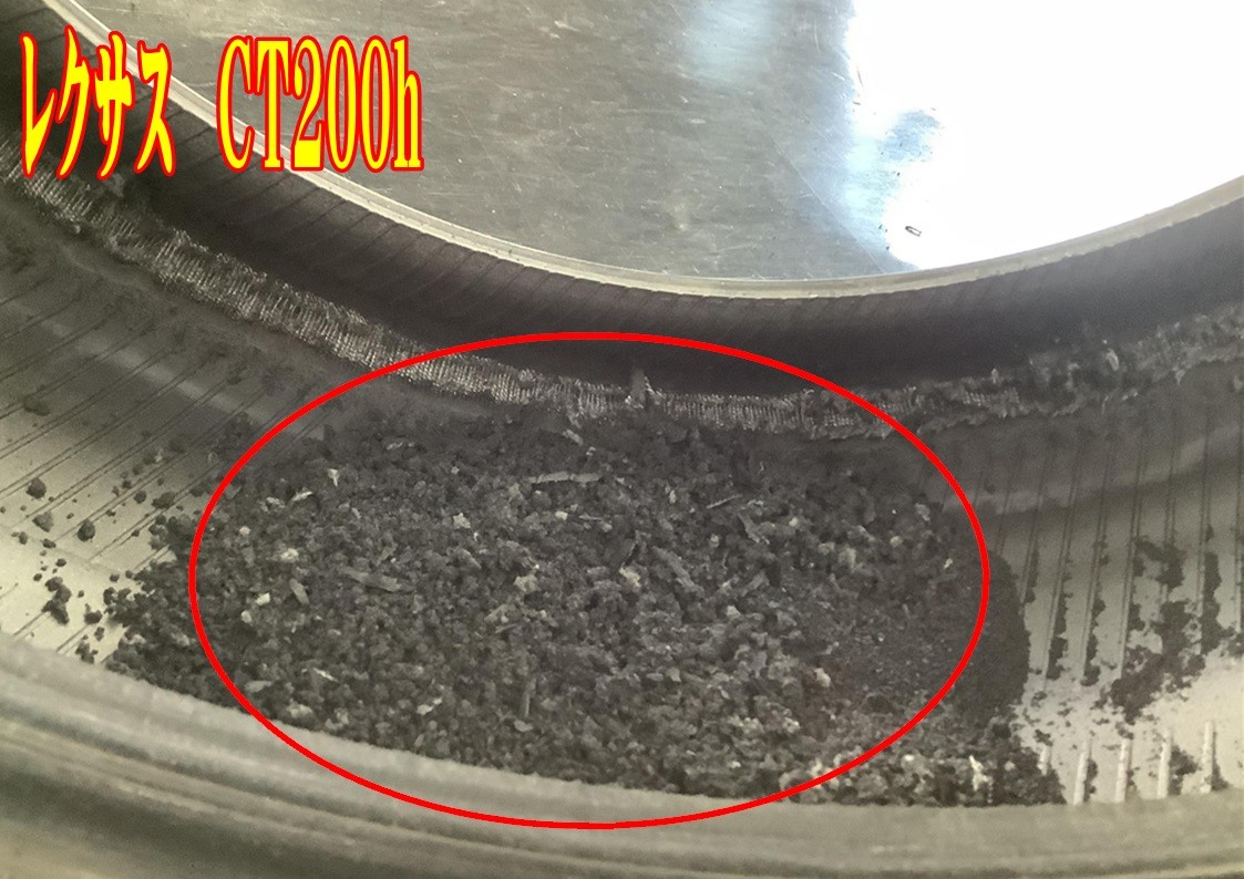 横が削れてタイヤの粉が山盛りです!
