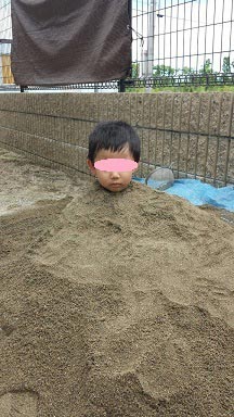 BBQの後に、家の砂場に埋まってしまいました。