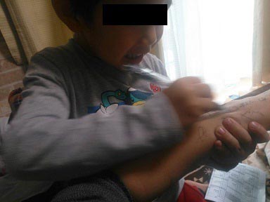 今日は、朝、息子が「かゆい。。」と起きてきました。