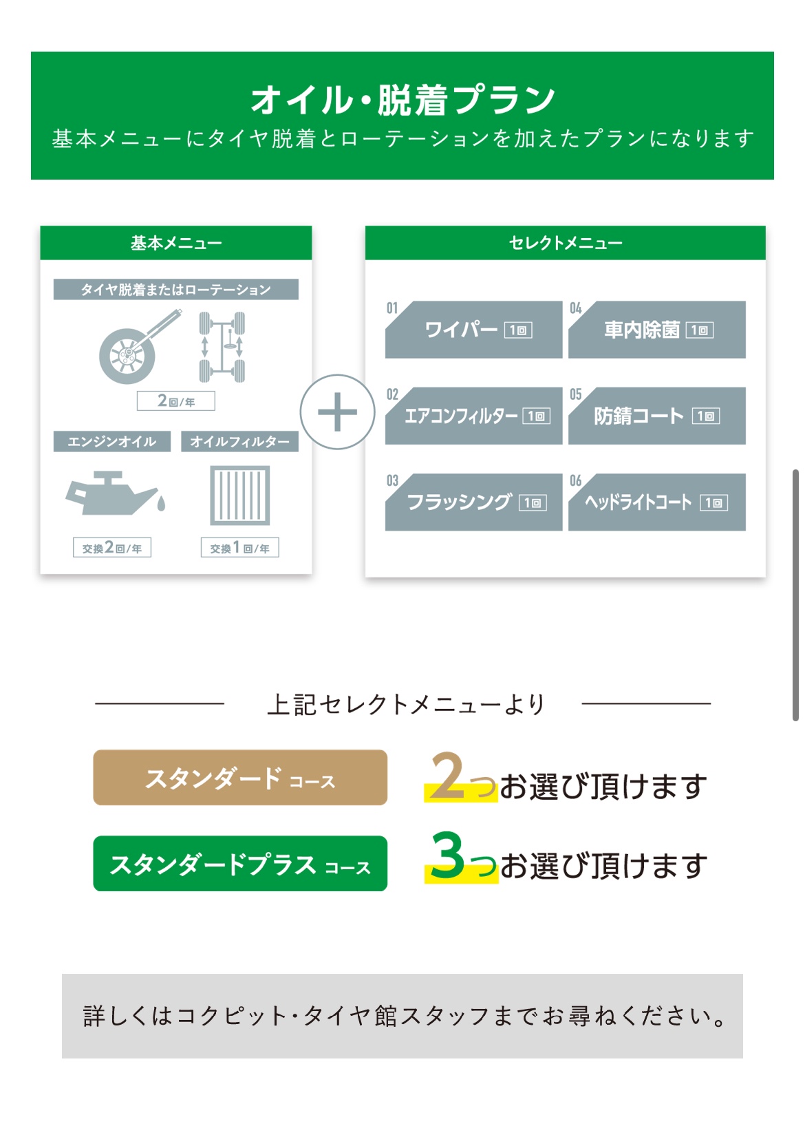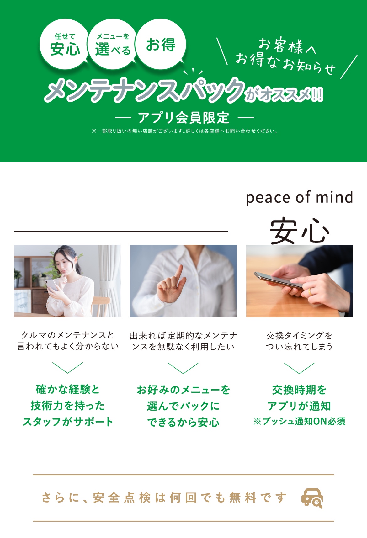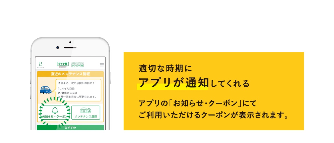 お車のメンテナンスはタイヤ館のメンテナンスパックがおすすめ。