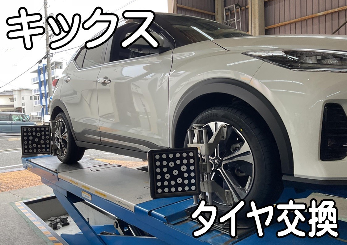 キックス タイヤ交換 205/55R17 アライメント調整も一緒に