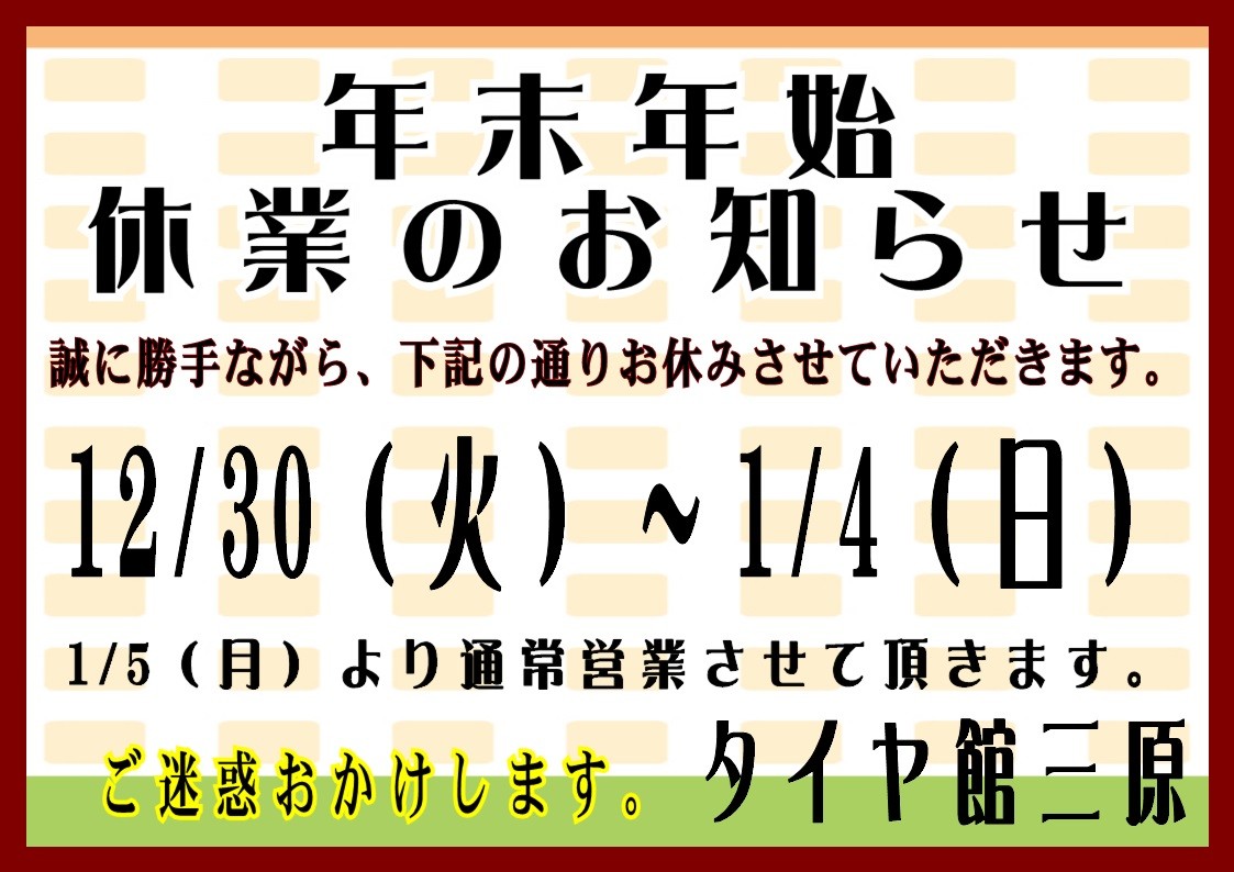 旧年中はコクピット・タイヤ館をご利用いただき、誠にありがとうございました。 本年もお客様の安全・安心なカーライフの為、一層努力してまいりますので、 引き続き宜しくお願い申し上げます。 いつもコクピット・タイヤ館をご愛顧いただいているアプリ会員様限定で 新春初売りお年玉キャンペーン...
