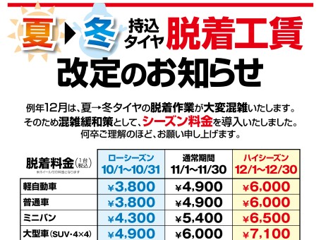【お知らせ】タイヤクローク(お預かりサービス)ご利用のお客様へ