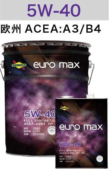 『EURO MAX 5W-40』は、ACEA:A3/B4に対応し、