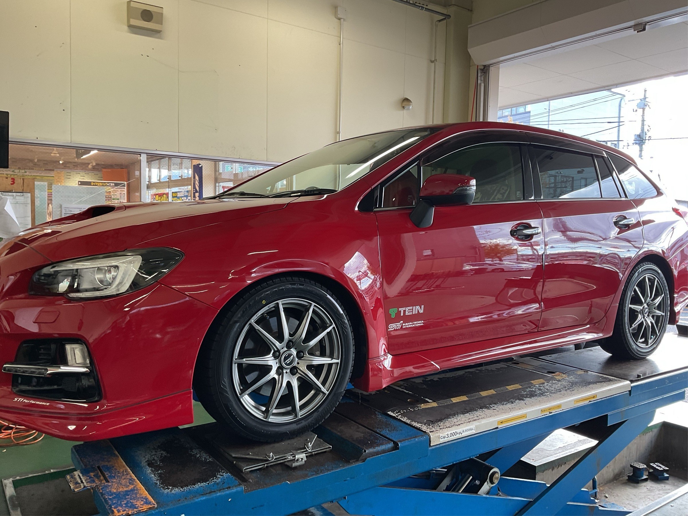 【スバル レヴォーグ(VMG型)】スタッドレスタイヤ取り付け作業 BLIZZAK WZ-1 215/50R17 アライメント調整