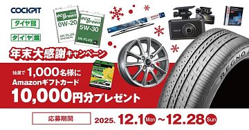 タイヤ館南久留米店では、総額1,000万円分キャッシュバック!「コクピット・タイヤ館年末大感謝キャンペーン」開催中です!