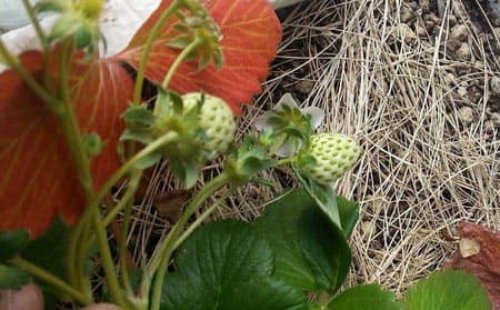 なんと2か月ほど前にプランターに植えていたイチゴが実をつけているではありませんか!