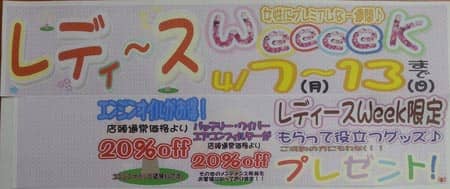 まずは、4月7日(月)から13日(日)はレディースWEEKを開催いたします。