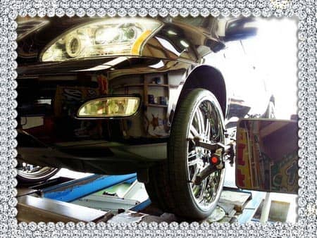 ホイールを履いたハリアーのアライメント