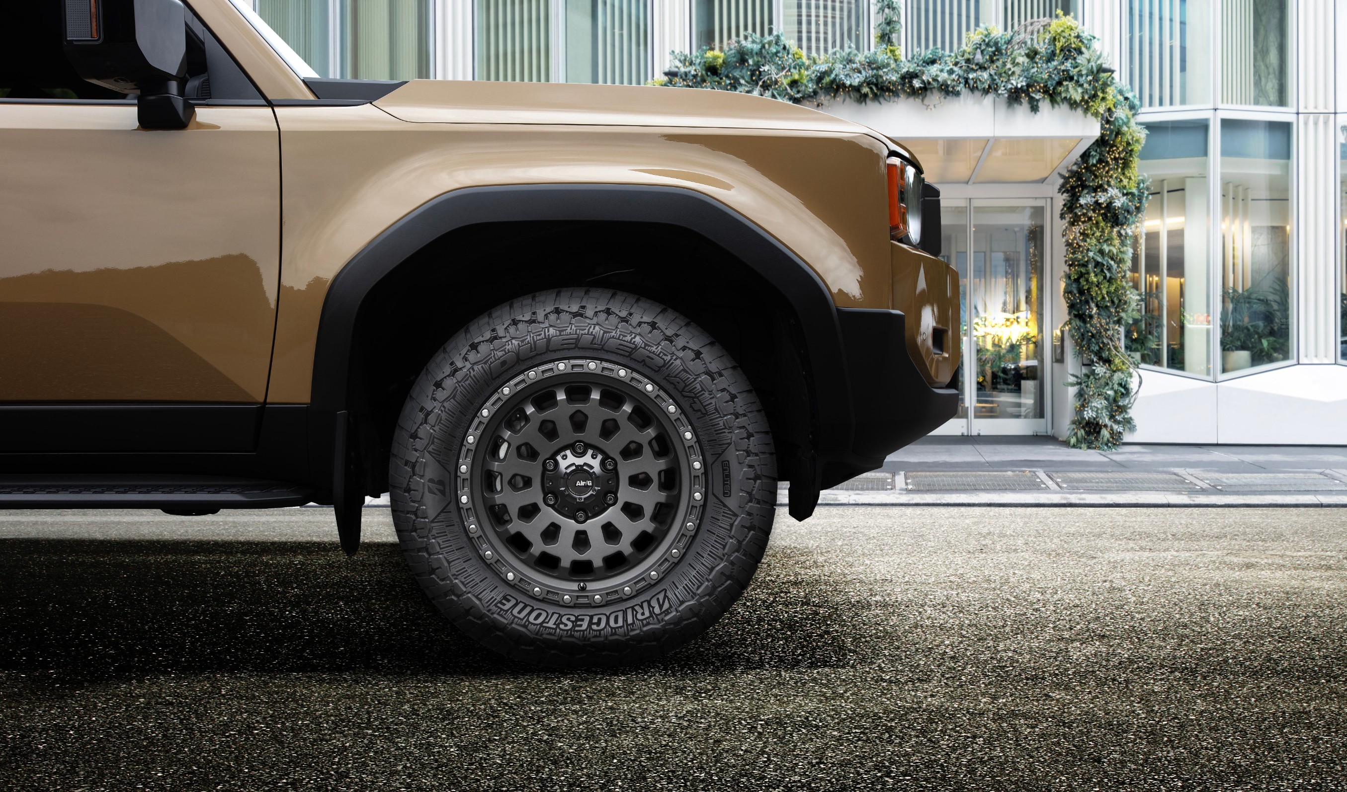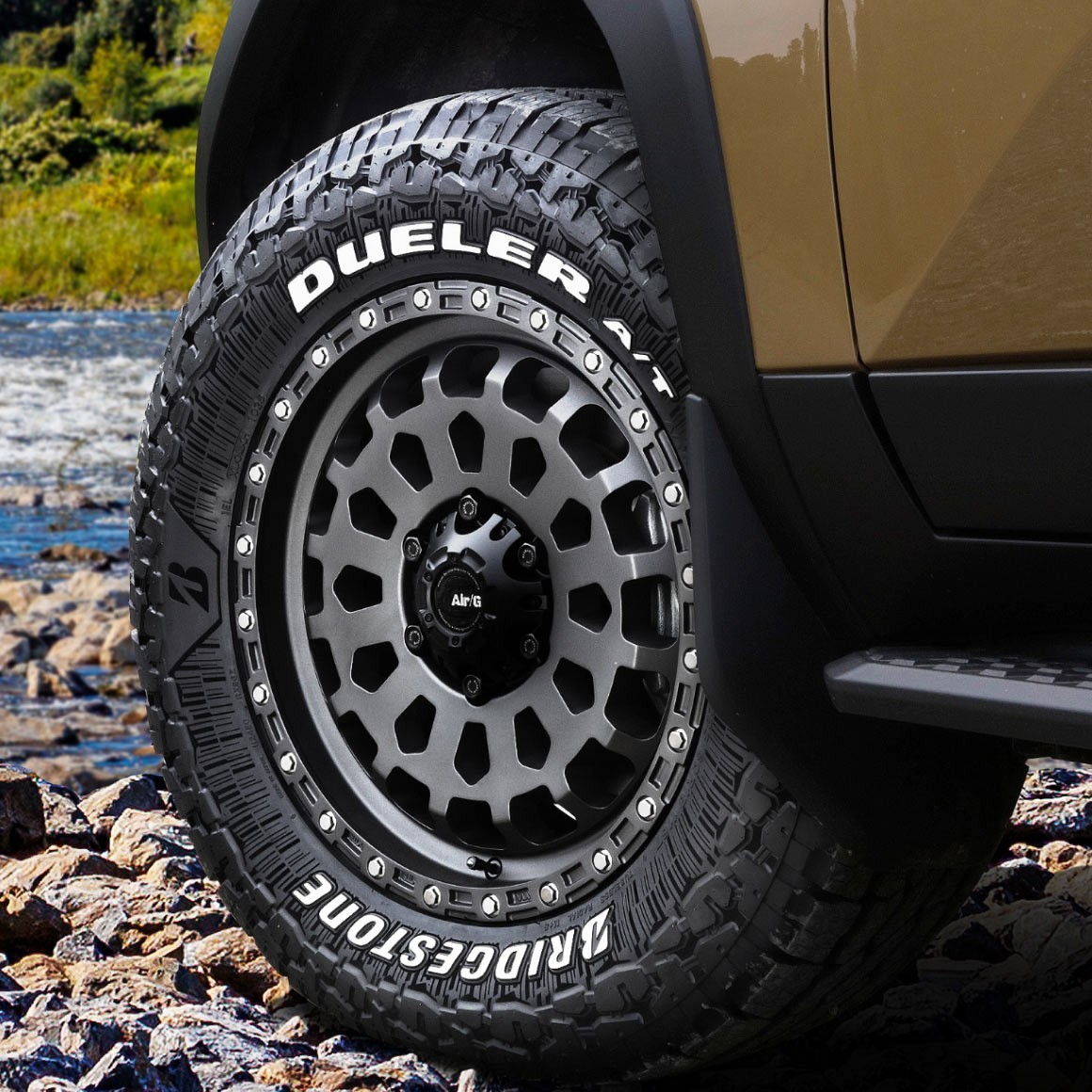 トレッドパターンの流れがタイヤの塊感を強調し、ブロックデザインが力強さを際立たせる