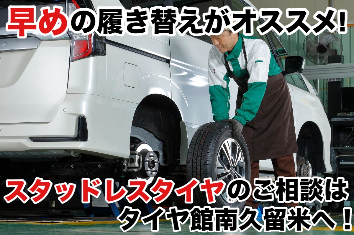 スタッドレスタイヤ(冬タイヤ)へは、早めの履き替えがおススメです!スタッドレスタイヤのご相談はタイヤ館南久留米店へ!