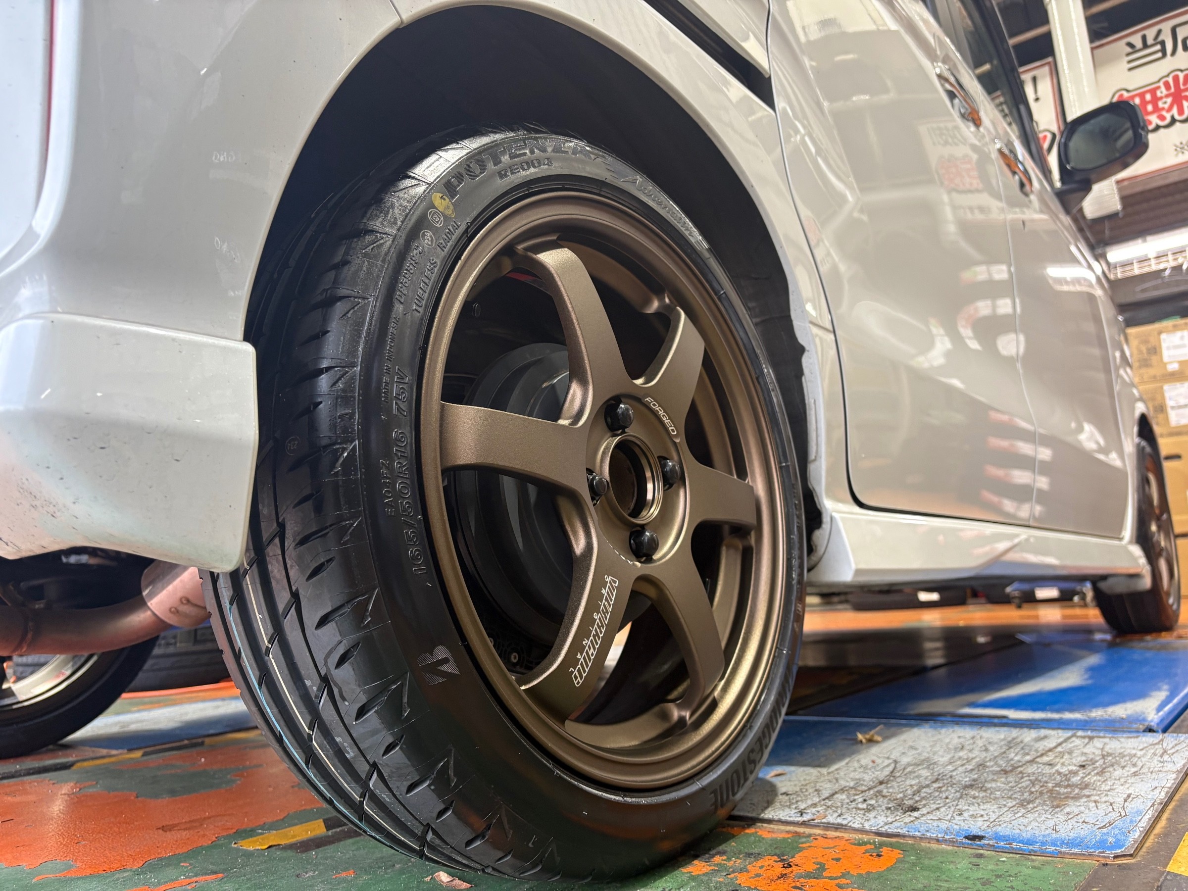 【ホンダ N-BOX】タイヤ&ホイール取り付け作業 POTENZA Adrenalin RE004 165/50R16 x RAYS VOLK RACING TE37