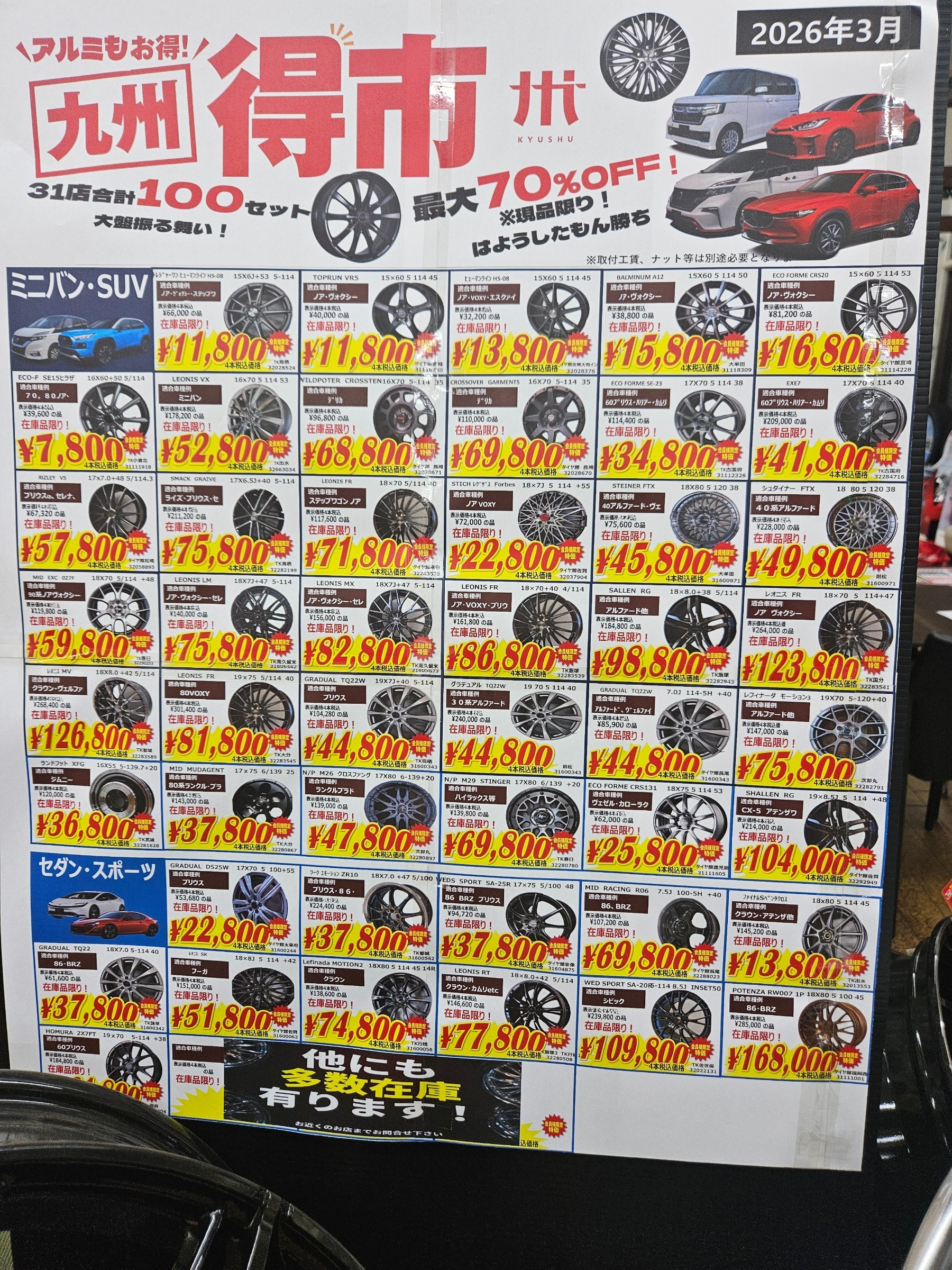 そしてなんと九州のタイヤ館の目玉品も全てお取り寄せ可能となっております。