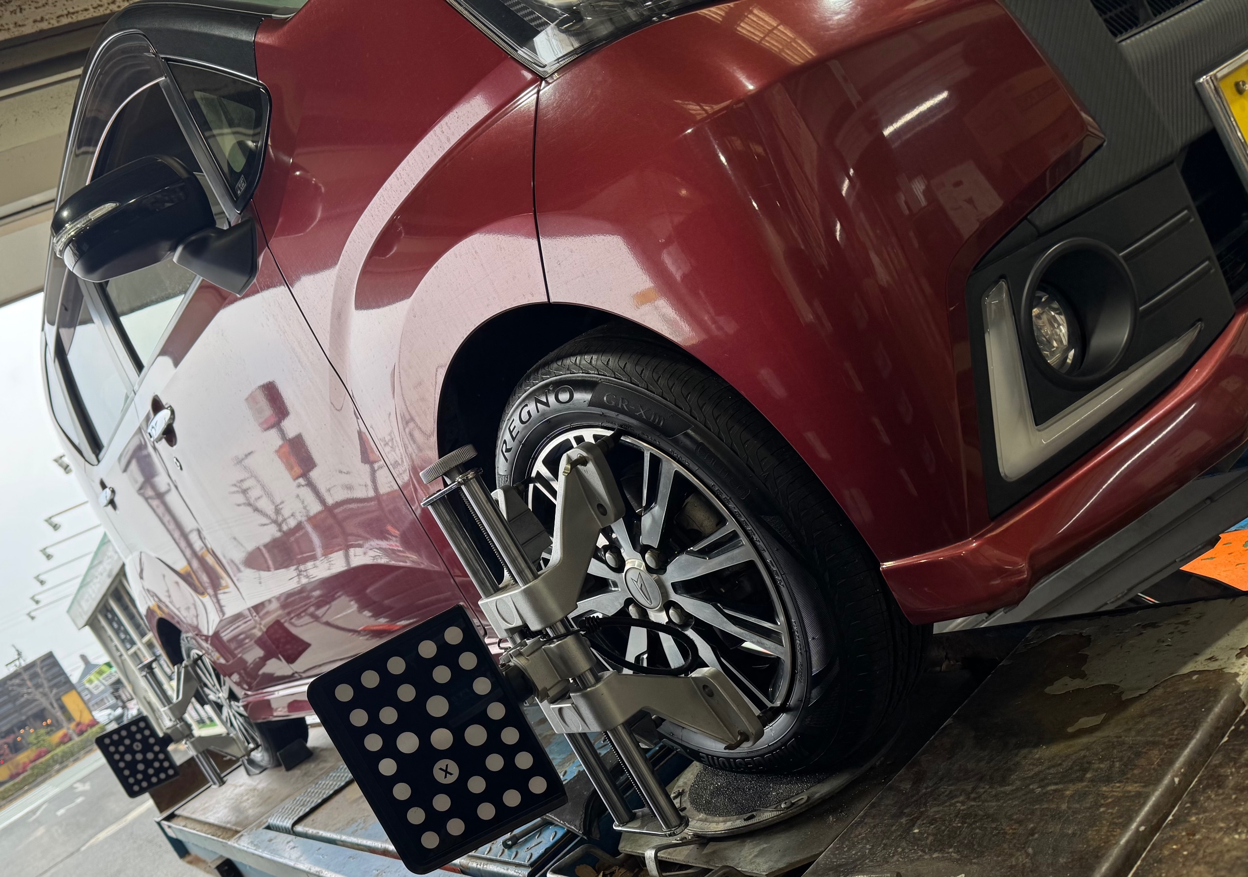 今回は、ダイハツ ムーヴ のタイヤ交換、アライメント調整を実施!!