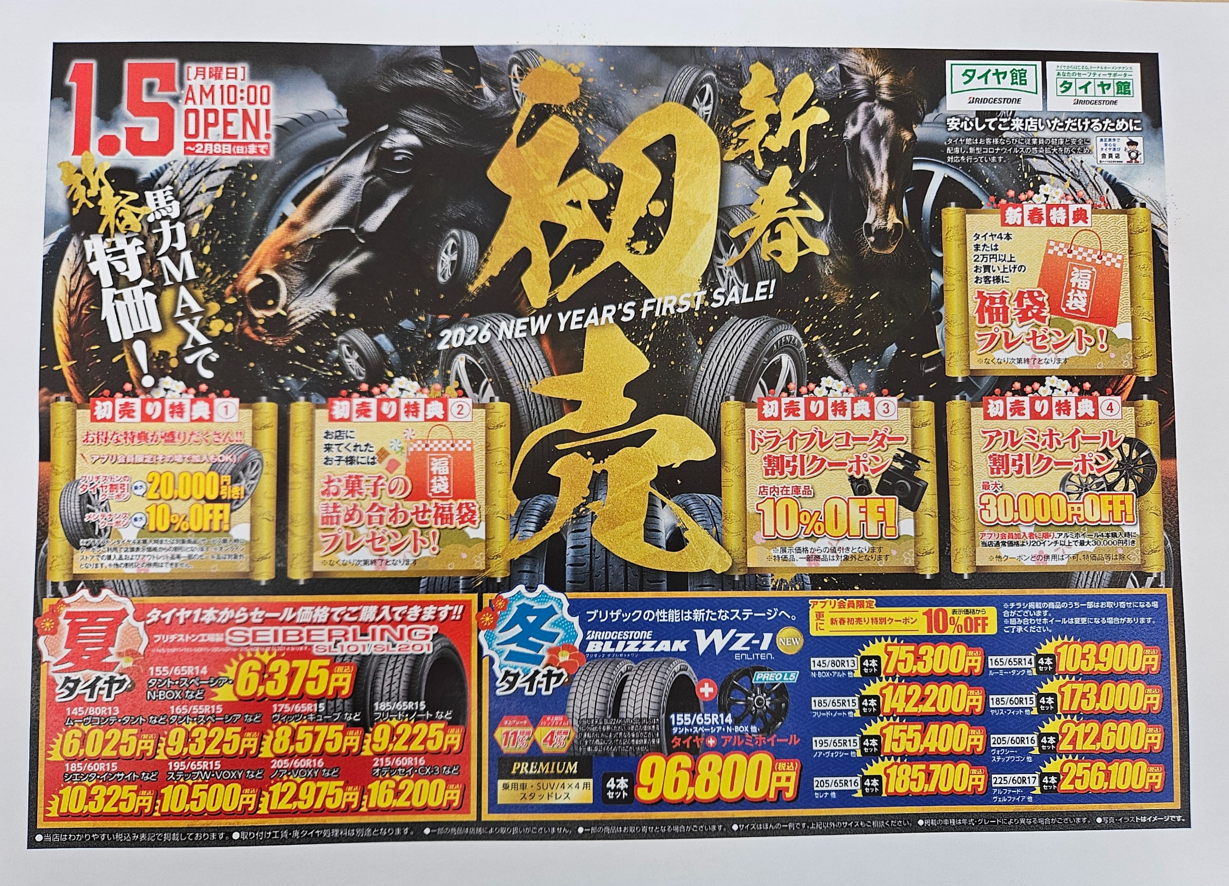来年は1/5(月)10時より新春初売りセールを開催いたします。