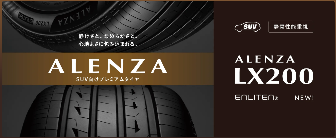 ↓ 静けさと、なめらかさと。心地よさに包まれる。 SUV向けプレミアムタイヤ「 ALENZA LX200 」