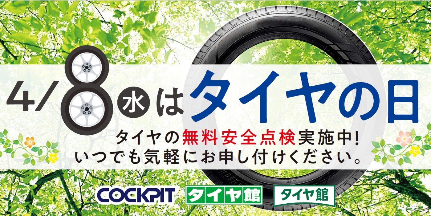 本日、4/8(水)は「タイヤの日」ですので、通常通り営業いたします! 明日、4/9(木)が店休日となります。