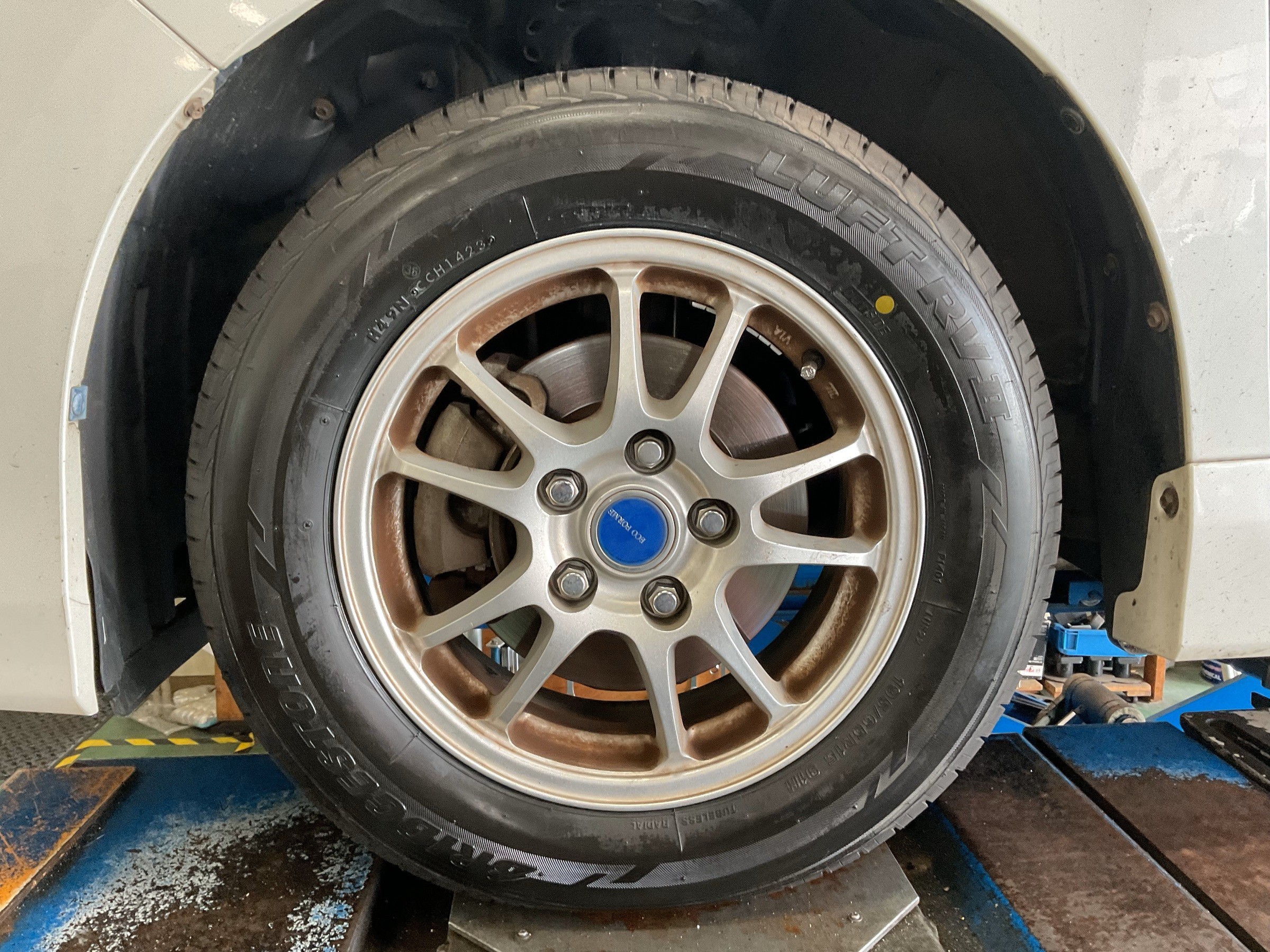 作業内容:新品タイヤ取り付け・アライメント測定・調整