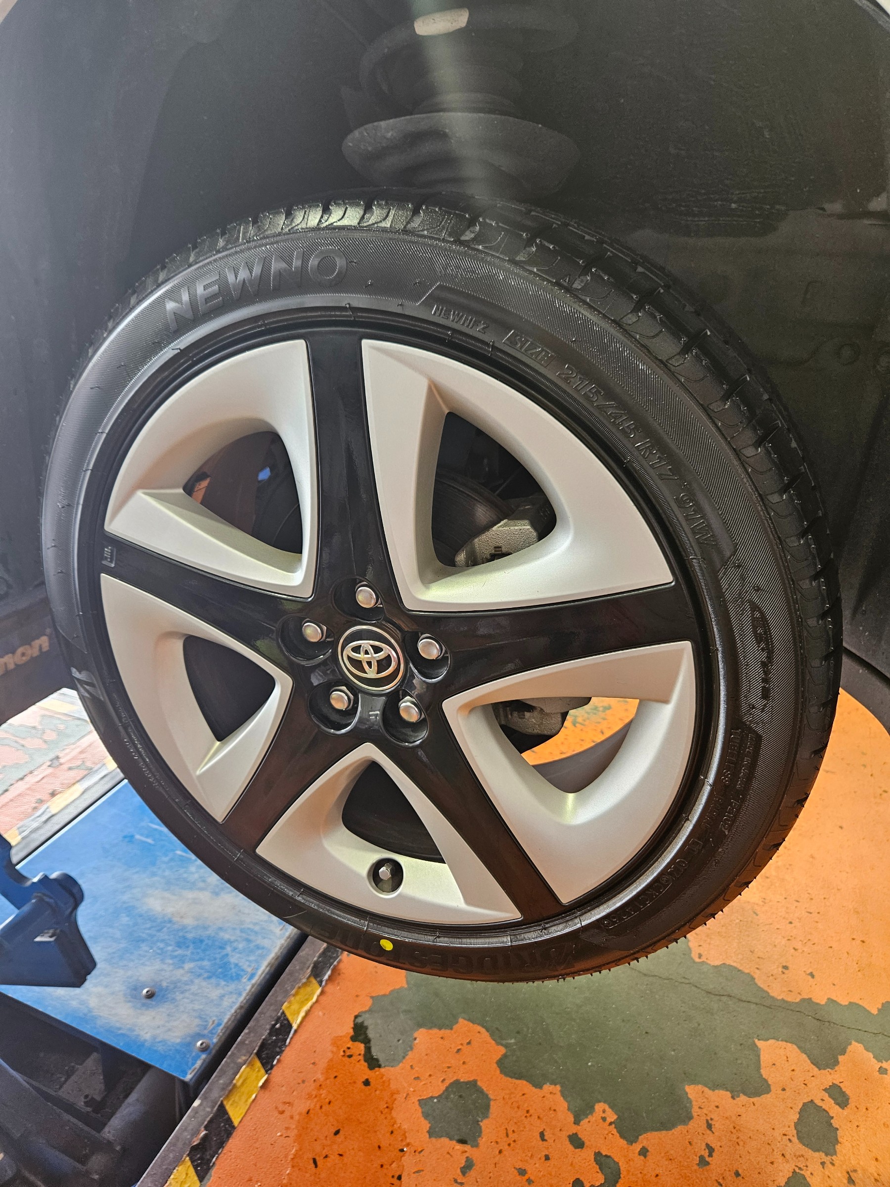 【トヨタ 50プリウス】タイヤ交換作業 NEWNO(ニューノ) 215/45R17 ハイブリッドカー補機バッテリー交換